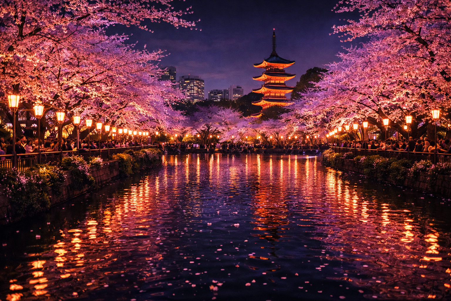2025年の上野桜まつりでは、日没後から21時ごろまでぼんぼりが灯され、夜桜を幻想的に楽しめる演出が行われました。