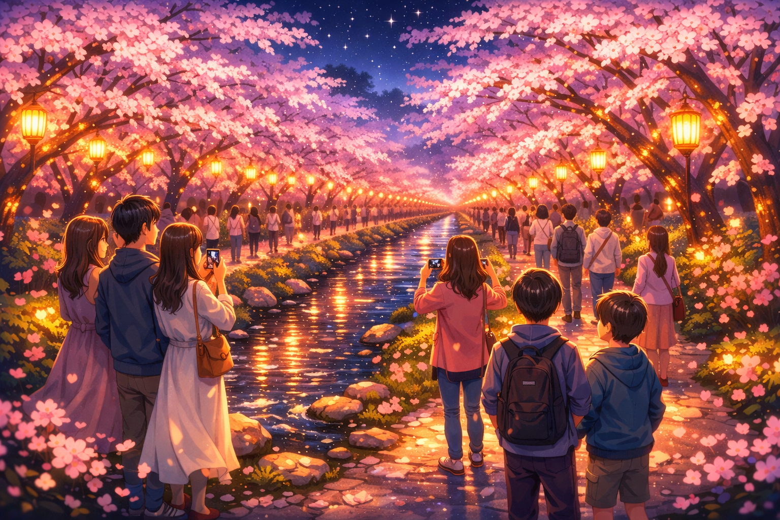 昼間のお花見も最高ですが、ライトアップされた夜桜はまた格別の美しさがあります。